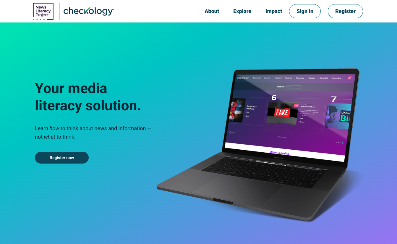 Checkology is a free e-learning platform intended to help web users of all ages hone the ability to identify credible information, seek out reliable news sources, and apply critical thinking to the online content they consume.