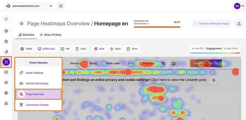 In the case of Newsroom, this process is simplified by integrating advanced behavioral analytics directly into the dashboard. Powered by TWIPLA, it gives your team immediate access to heatmaps, session recordings, and conversion funnel data without ever leaving the CMS.