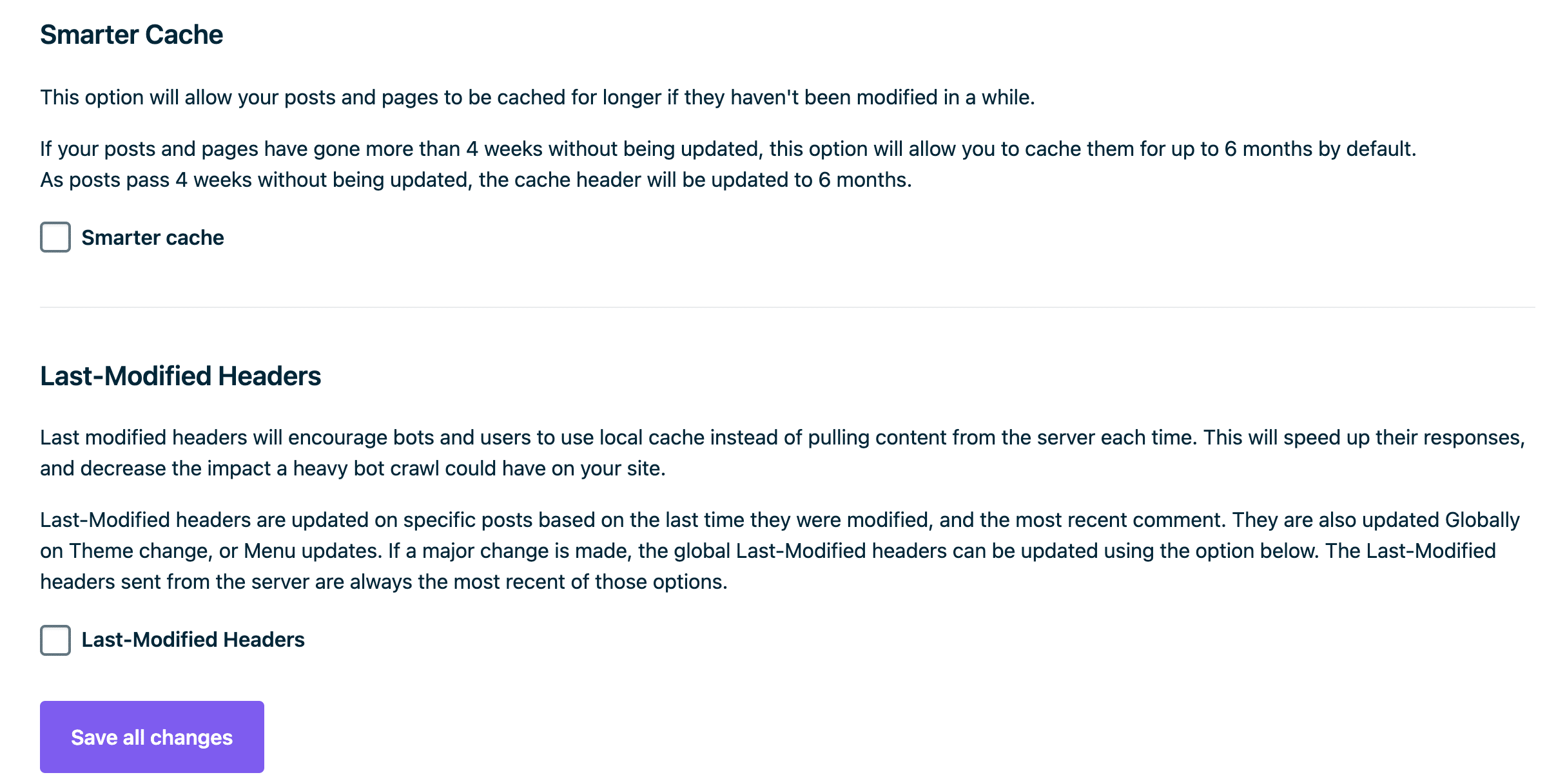 1. (Optional) Enable Smarter Cache and Last-modified Headers to increase cache even more for post that are not edited often