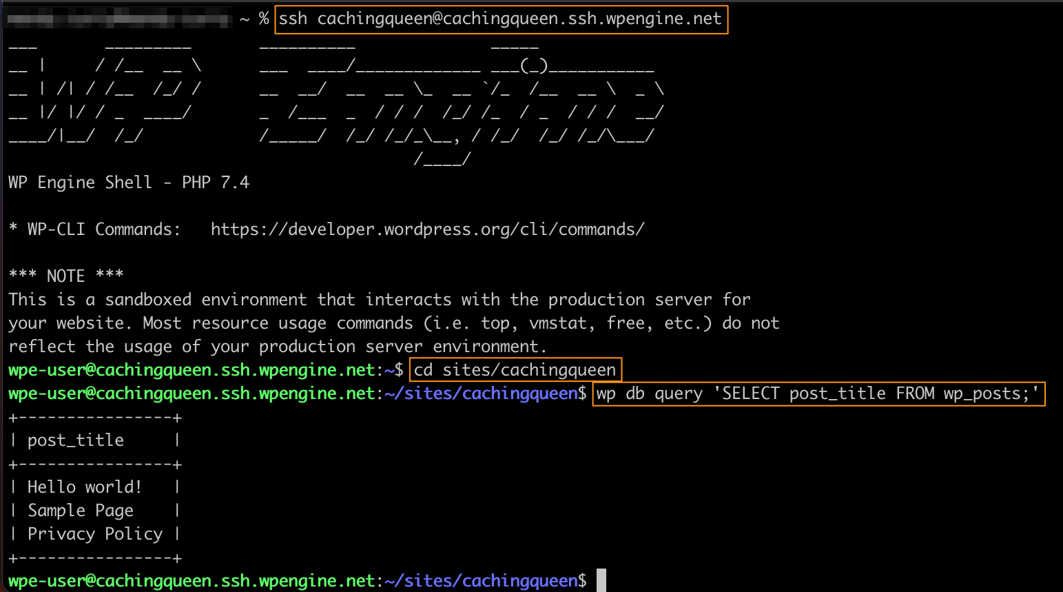 SSH Gateway is secure shell access which allows a user to run wp db query without allowlisting any IPs or using any additional MySQL programs. The wp db query command is part of the open source WordPress® software package, and allows the running of a SQL query against the database information supplied in the wp-config.php file.1
