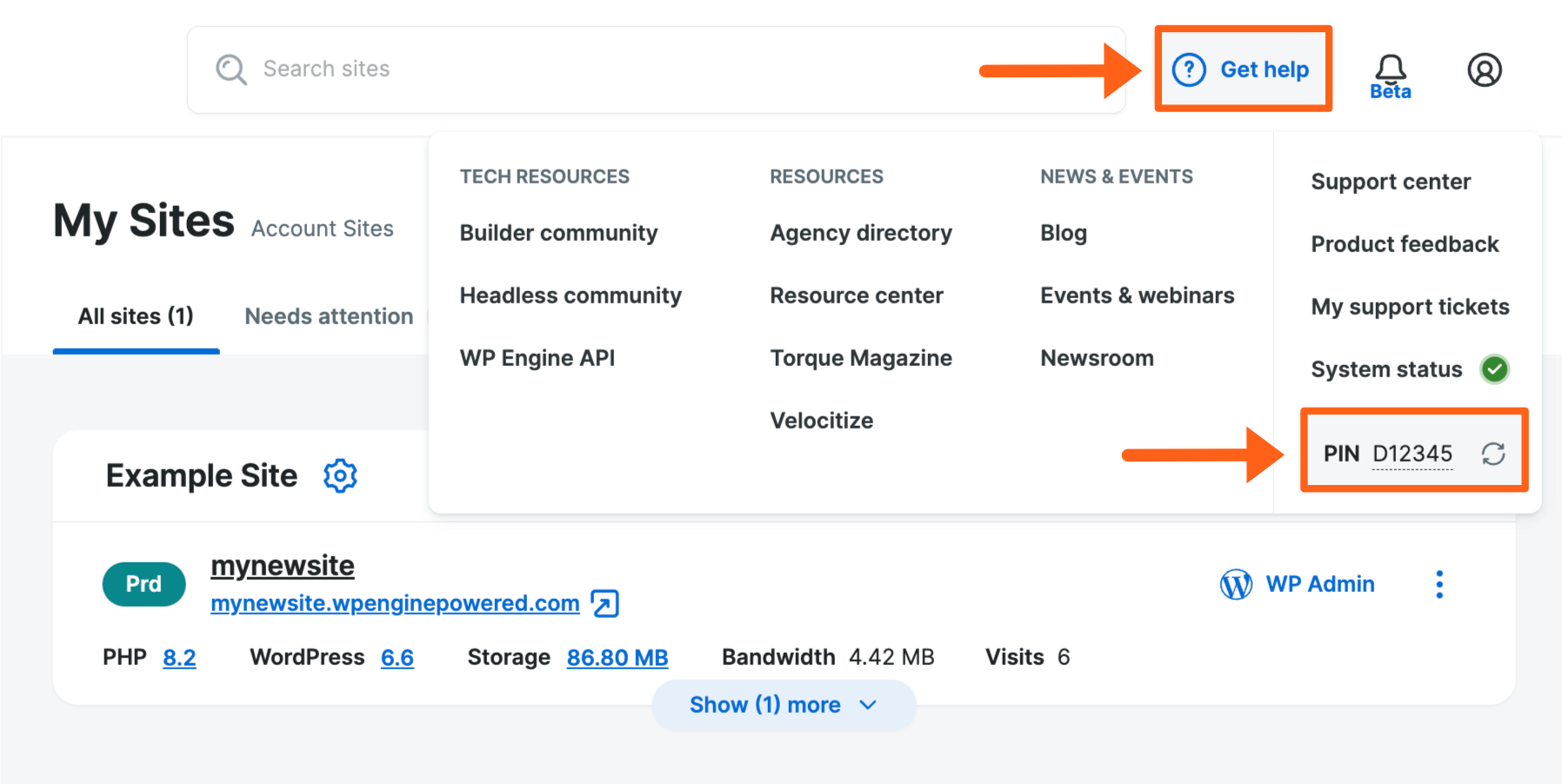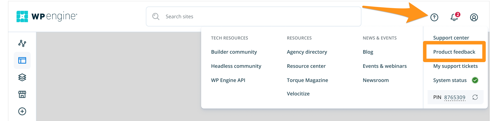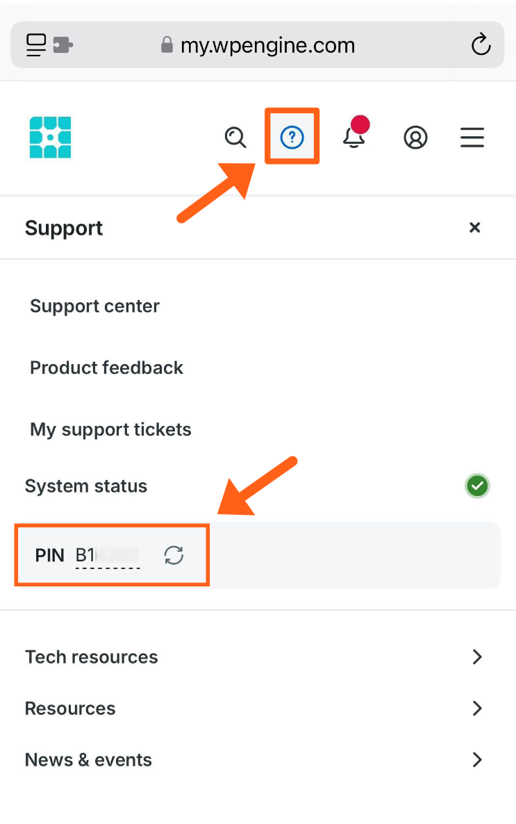 You’ll also notice, as shown above, that your support pin will be blank in the All accounts view, because you have a separate support pin for each account. To see a support pin, you must select a single account from the account switcher at the top of the left sidebar.